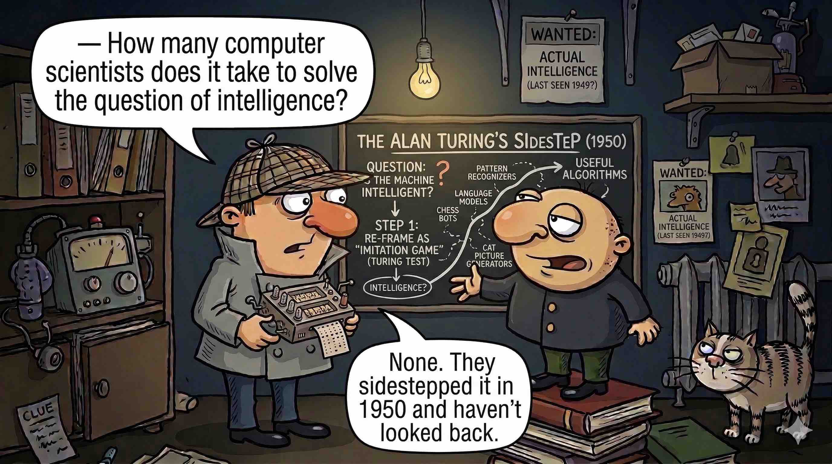 Turing posed his question in 1950. For roughly seventy years, no system convincingly answered it. Arguably, some modern language models now do — or come close enough that the distinction has become philosophical rather than practical. And the moment that happened, many people concluded that the Turing test was the wrong test all along.